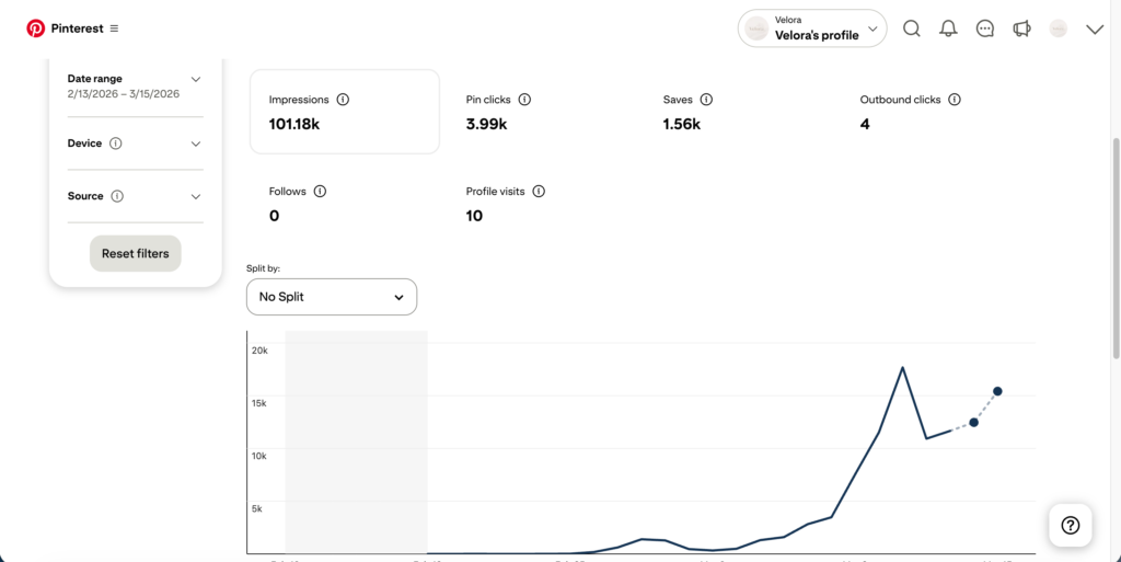 Once I started treating Pinterest like Google SEO, my results completely changed. One of my pins went from 12 impressions to 100000 impressions in 3 weeks, and that single pin started sending consistent traffic to my website.